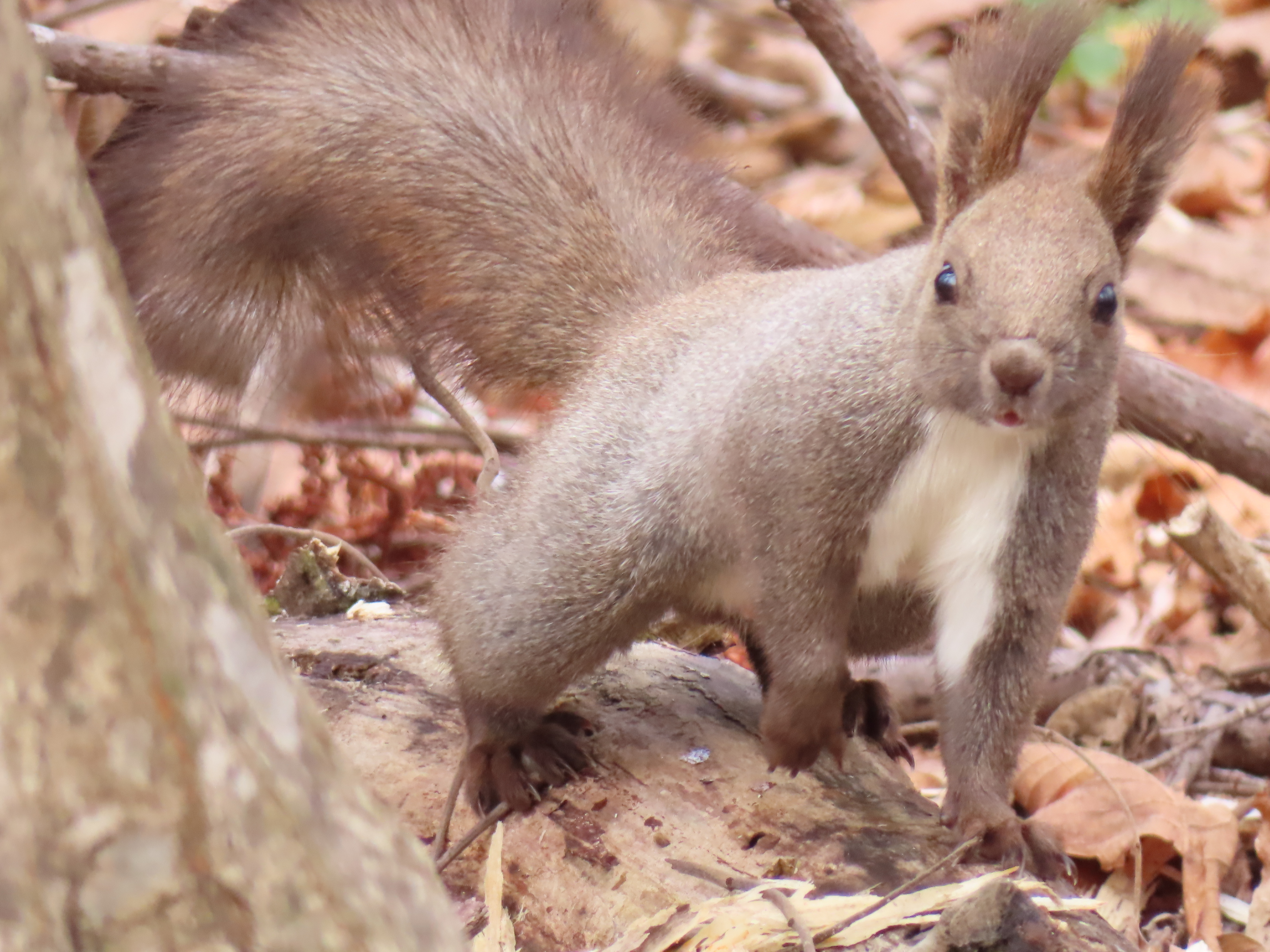 草や葉の緑が濃い季節になると、素早く動くエゾリスを見つけるのが難しくなりますが、このように近くまで出てくることがあります。